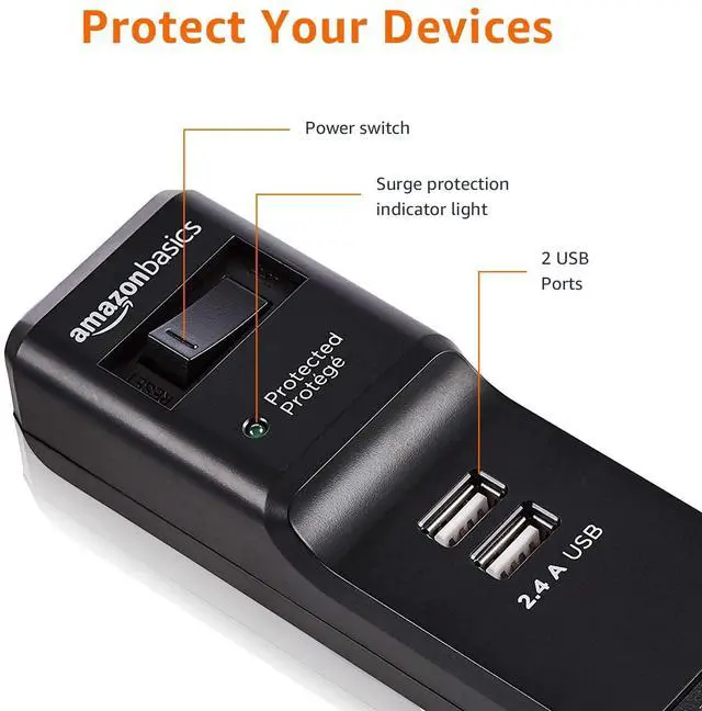 The heavy-duty Basics power strip helps safeguard sensitive electronic devices in the event of power surges, spikes, and outages.