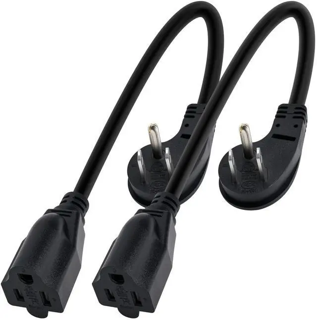 8 Inch Short Power Extension Cord 2Pack,45-Degree Low Profile Flat Plug 3-Prong Male to Female Heavy Duty Grounded Power Extension Cable Outlet Saver Socket Adapter, ETL Listed, 16AWG, SJTW 13A 1625W