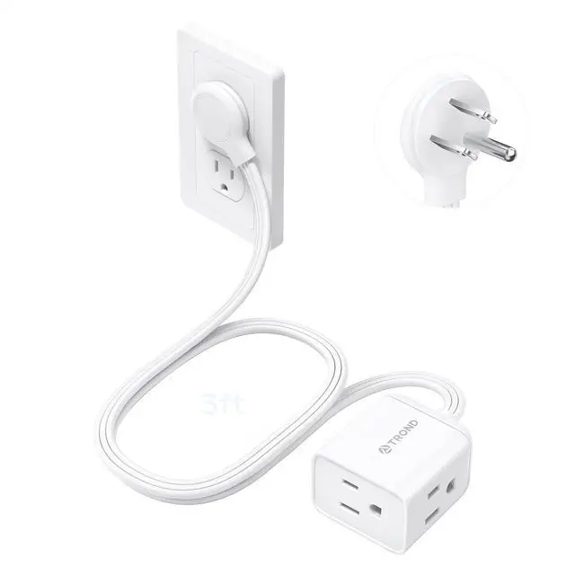 The extension cord with multiple outlets are located on 3 sides and can accommodate 3 large AC adapter plugs without blocking each other — perfect for creating a centralized hub for your electronics at your home or office. White LED to indicate power.