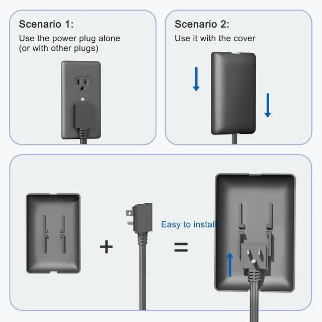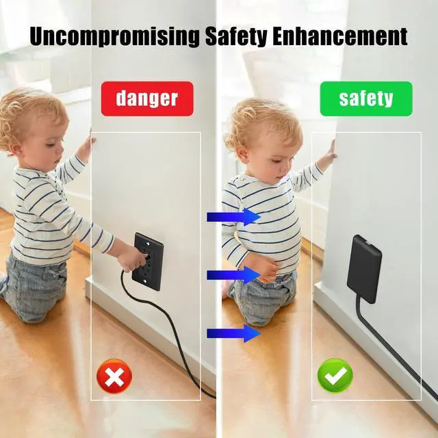 - Hide the outlet with a cover for an ultra-thin, safe, and space-saving design. This not only eliminates unsightly and bulky plugs, but also simultaneously keeps curious little ones and pets away from potential hazards.