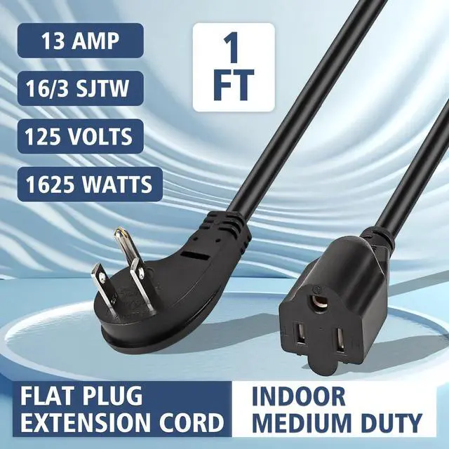 Safe & Flexible 1Ft Power CordTangle-free design for easy coiling and storage; extend your short cord with this 1' extension cord, reaching wall sockets behind furniture or in hard-to-reach areas easily