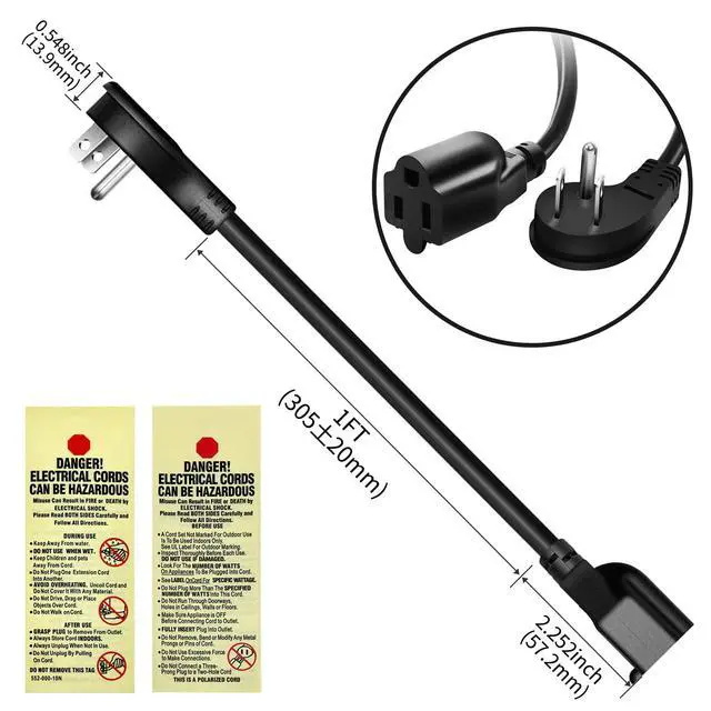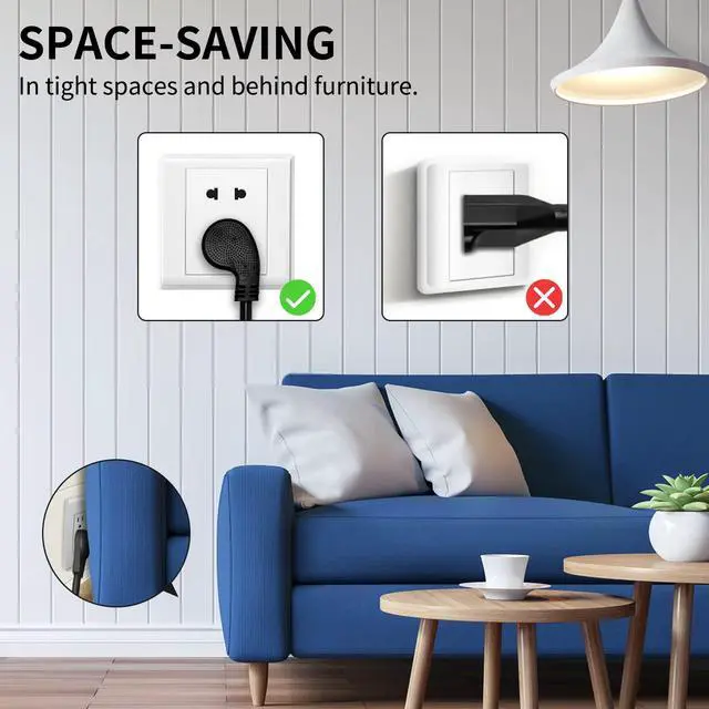 Miady Flat Plug Extension Cord 1 Ft —— Suitable for plug and socket connections in tight spaces.