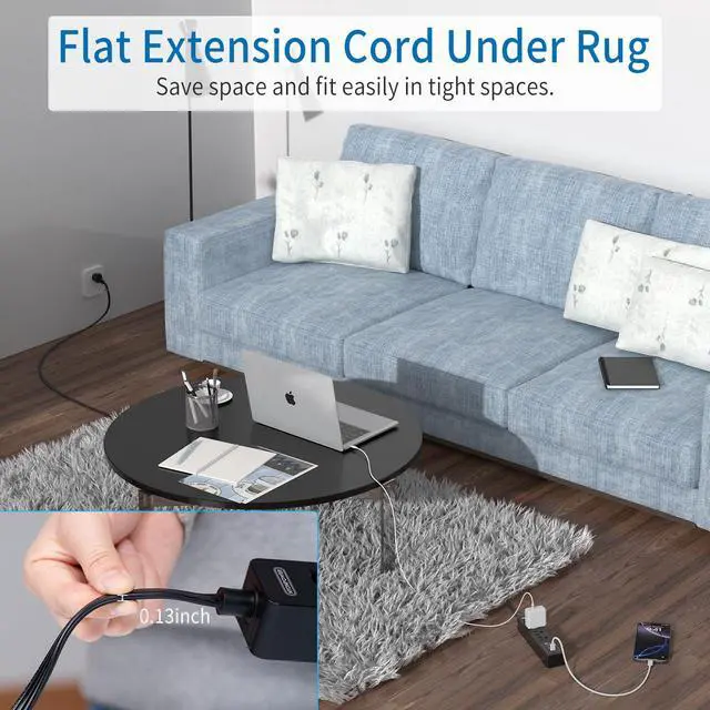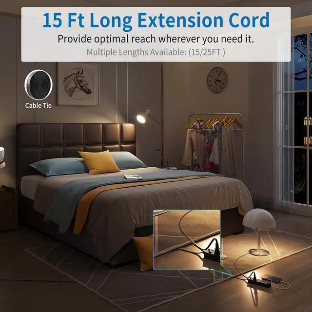 15Ft extension cord extends the long cord power strip to the table or other place easily where you need power outlets or USB charging ports.
