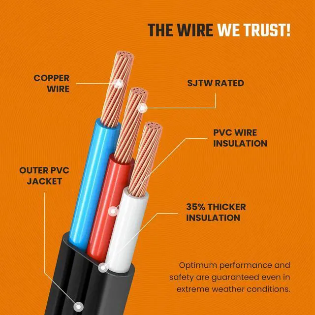HEAVY DUTY 16/3 POWER CORD Rated 13 Amp, 125 Volt, 1625 Watt. Built with durable insulation and grounded 3 prong design for reliable indoor electrical performance and everyday use.