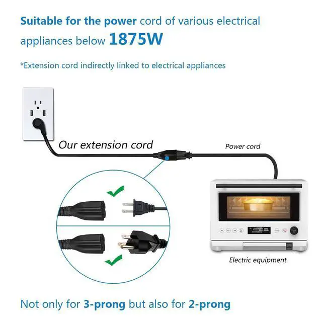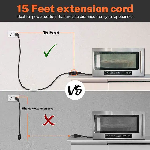 Thicker 14 AWG extension wire handles higher amperage and wattage, reducing overheating risk for safer use.
