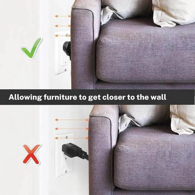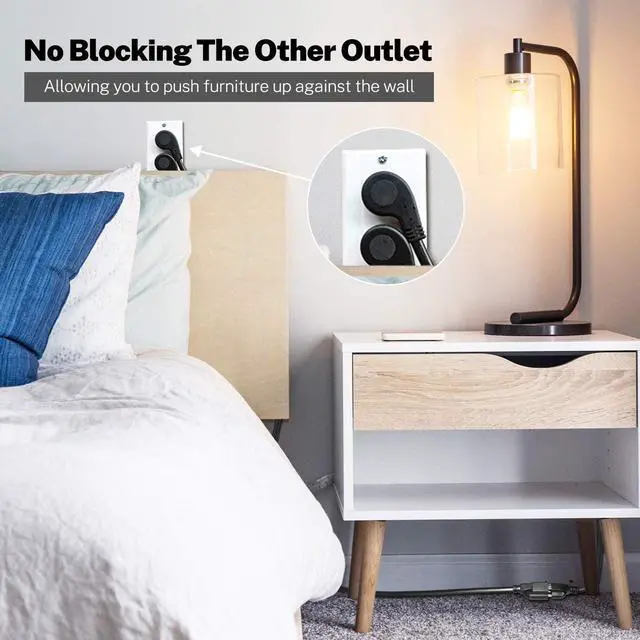 Won't block other outlets The low profile extension cord is specifically designed for outlets located on furniture, shelves, desks, or any place where a standard cord is difficult to use due to its proximity to a wall.