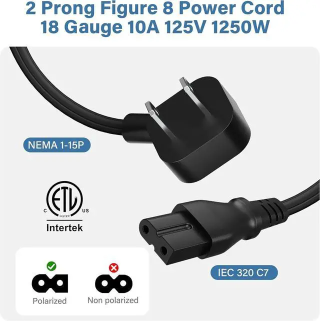 | Connector Type | Polarized NEMA 1-15P Male (Flat Plug) to IEC 320 C7 Female |