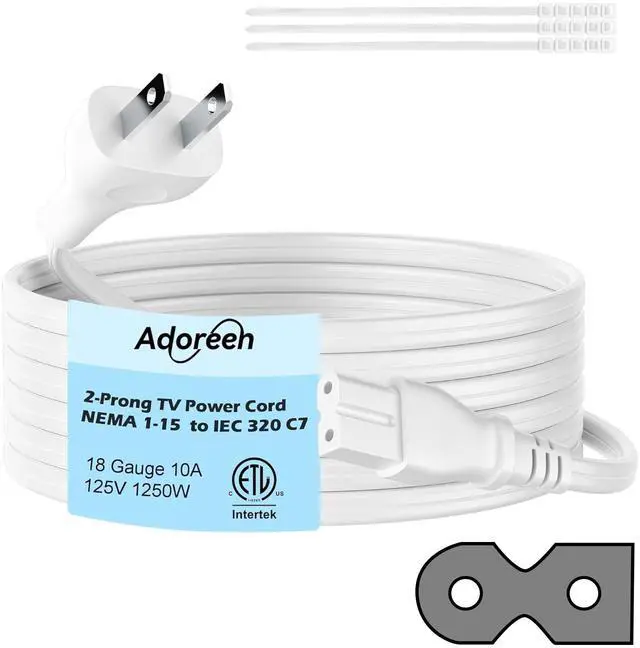 Adoreen 45 Degree Flat Plug 2-Prong TV Power Cord