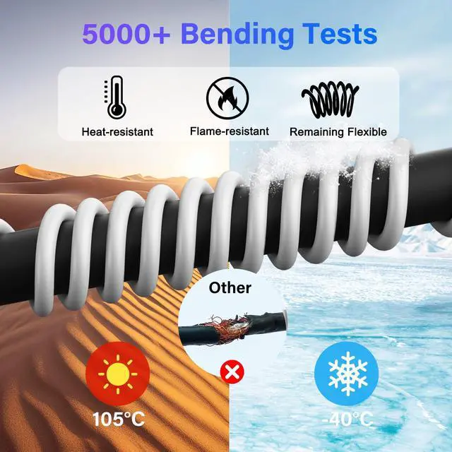 Thickened flame-retardant insulation, heat-resistant (operating temperature 105°C), no overheating or melting even with prolonged use, ensuring electrical safety.