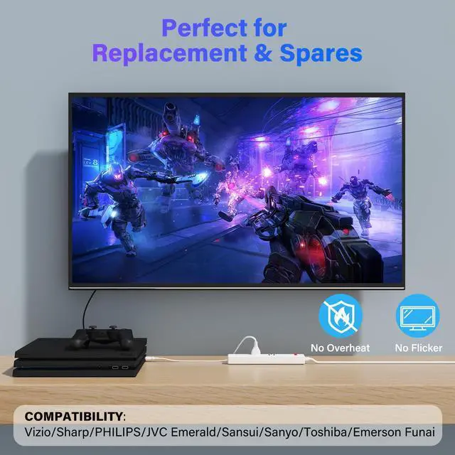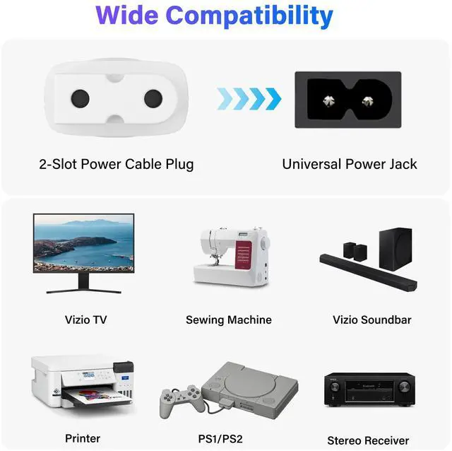 Compatible with Arris WiFi router modems; Vizio/Sharp/Sanyo/Emerson TVs; Philips TVs; Sony PlayStation 1/2 (PS1/PS2); Sony Blu-ray players; Bose Companion 3/5 and Acoustimass 15/16 series home audio systems; Numark/JVC Emerald/Pioneer stereo receivers; Singer/Brother sewing machines; Vizio D/E/M series LED smart TVs; Vizio Sound Bars and speaker stands; Sylvania CD players; Hisense Roku TVs, etc