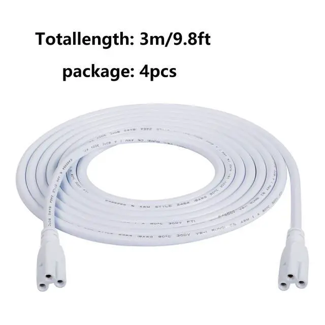 Package: 4 pcs LED Light Tube Cable 3m/10ft +8pcs Clips