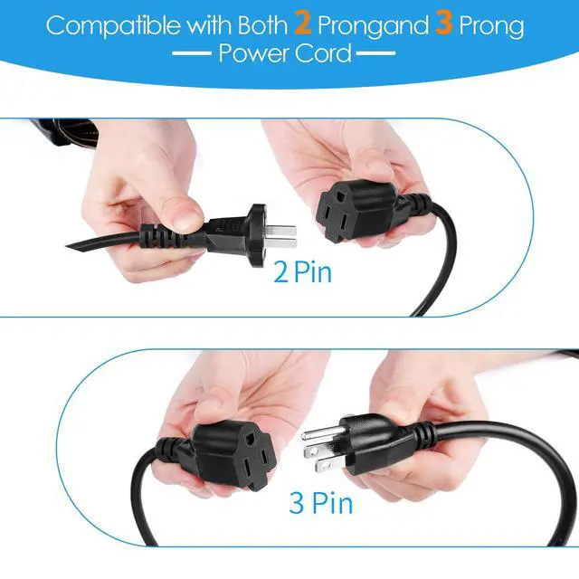 Compatible with 2-prong and 3-prong power cords