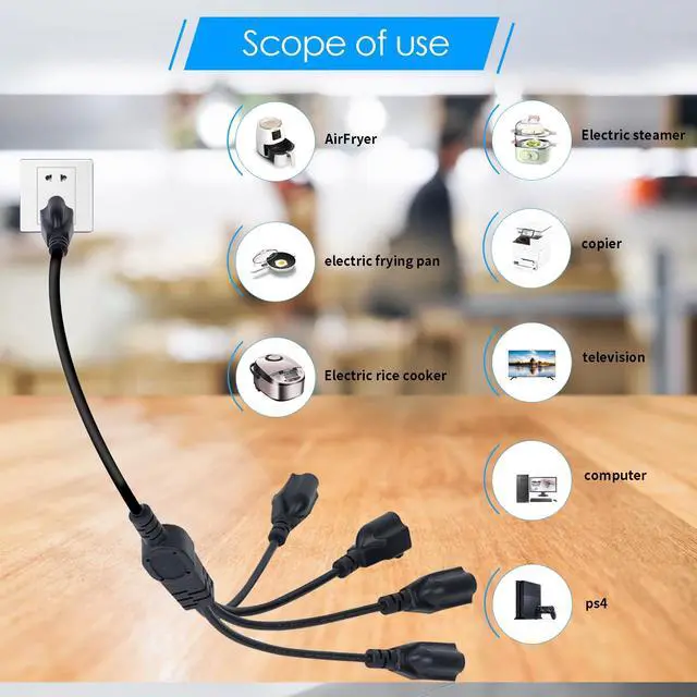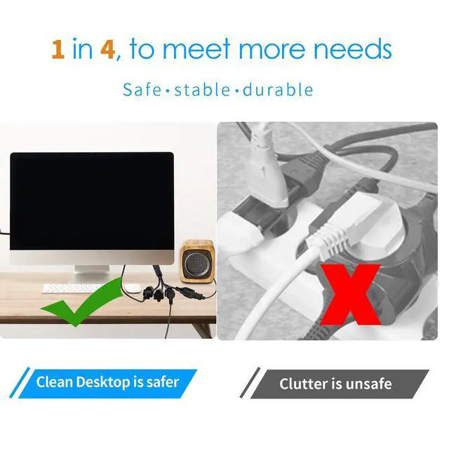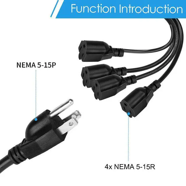 - The 3-Way Outlet Power Splitter Extension Cord splits one NEMA 5-15 plug into 4 NEMA 5-15 outlets and is designed to help you stay tidy