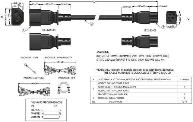 With an 18AWG wire gauge, it ensures optimal power transmission, while the UL SJT 105°C temperature rating guarantees safe operation, even under high heat.
