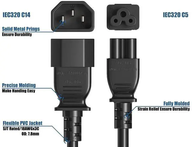 The sleek black cord adds a touch of versatility and aesthetics to your setup, and the Type A C14 and Type B C5 connectors provide secure, reliable connections.
