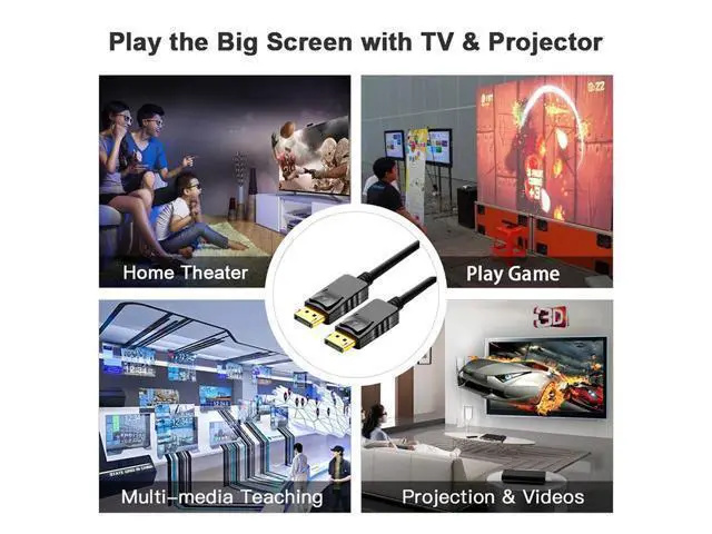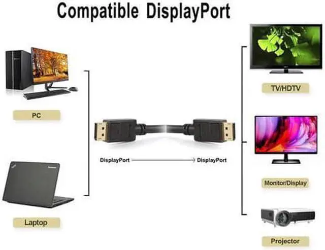 Bidirectional DisplayPort to DisplayPort Cable 6 Feet Black. Connect a DisplayPort compatible PC to a monitor or projector with DisplayPort. Or Connect a DisplayPort compatabile PC and laptop to a monitor with Displayport.
