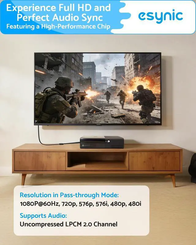 True Pass-Through---:Our eSynic YPbPr to HDMI Cable Support 1080P@60Hz to 480i - No Forced Upscaling Artifacts-Preserves original signal integrity: Input: 480i Output: 480i (authentic retro look) Input: 1080P@60Hz Output: 1080P@60Hz (full HD)-No artificial sharpening or lag-inducing processing.