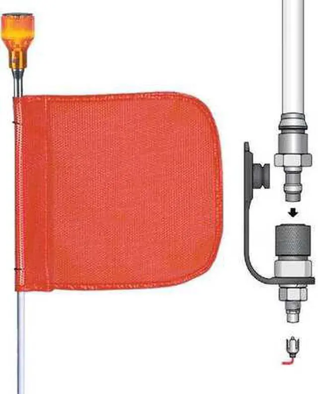 Warning Whip, Overall Height: 3 ft., Color: White Whip, Orange Flag, Flag Height: 11", Flag Width: 12", Material: Fiber Glass, Includes: Male Quick Disconnect Base, Lamp Socket