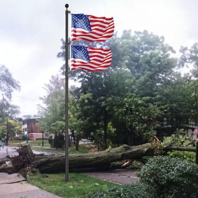 [Easy to Assemble & Tangle Free]The telescopic flag pole can be easily installed in a few minutes. The 3 clips that hold the flags on can rotate 360° around the pole to prevent the flag from tangling. In addition, you can proudly fly 2 flags in your yard to show your independence, democracy and strong patriotism.