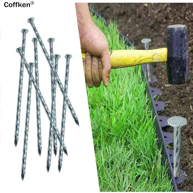 Quantity And Specification: 40 pcs of galvanized metal 14-inch landscape edging anchoring spiral spikes