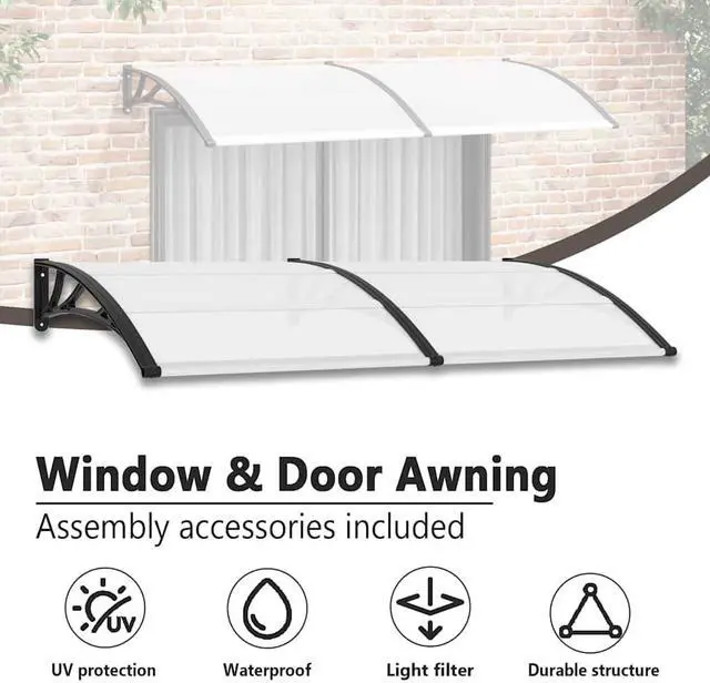 This Door Canopy is crafted to boost the look and safety of your entrance, featuring a cool mix of black and clear elements that not only do the job but also make your doorway pop. At 78.7 x 39.4 in, its got plenty of coverage to keep your entrance cozy, rain or shine, ensuring your guests feel welcome no matter the weather.