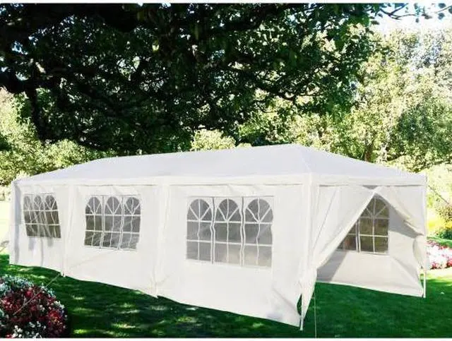 The party canopy comes with ropes and stakes to secure it properly and ensure stability in various weather conditions.