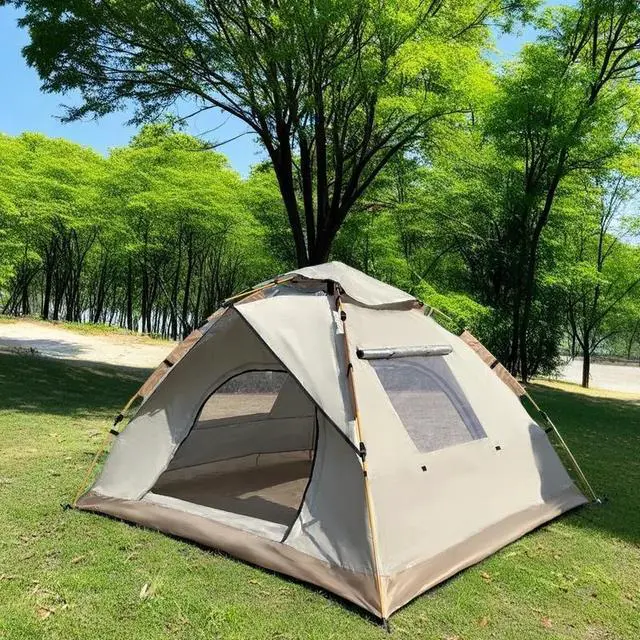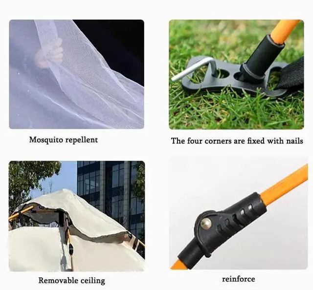 Stay dry and comfortable with this 2-person camping tent. Made with waterproof Oxford fabric and breathable mesh, it protects against sun, rain, and insects. The quick setup design with fiberglass poles makes it easy to open and fold, while the spacious 53.15" height and 78.74" width provide room for family or gear. With a removable ceiling for airflow and a reinforced frame for stability, its ideal for camping, picnics, or backyard use.