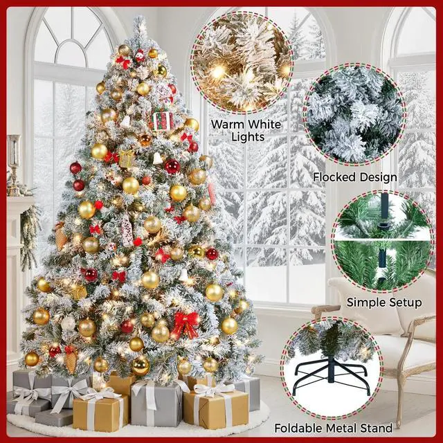 Bring the magic of a snowy Christmas indoors! This NOVAROOT artificial tree features a lush snow-flocked design that mimics freshly fallen snow. With over 1000 individually adjustable branch tips, it offers a full and realistic lookperfect for hanging ornaments, garlands, and your favorite tree topper.