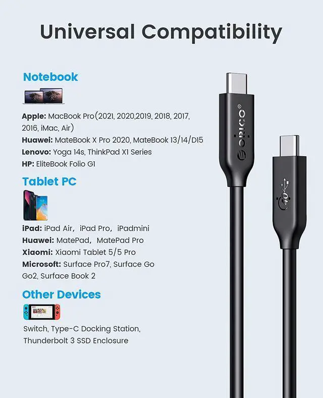 ORICO USB 4 Cable USB-IF Certified USB C Cable HD 8K @60Hz PD100W Fast Charge 40Gbps Data Transfer for Thunderbolt 3 Macbook
