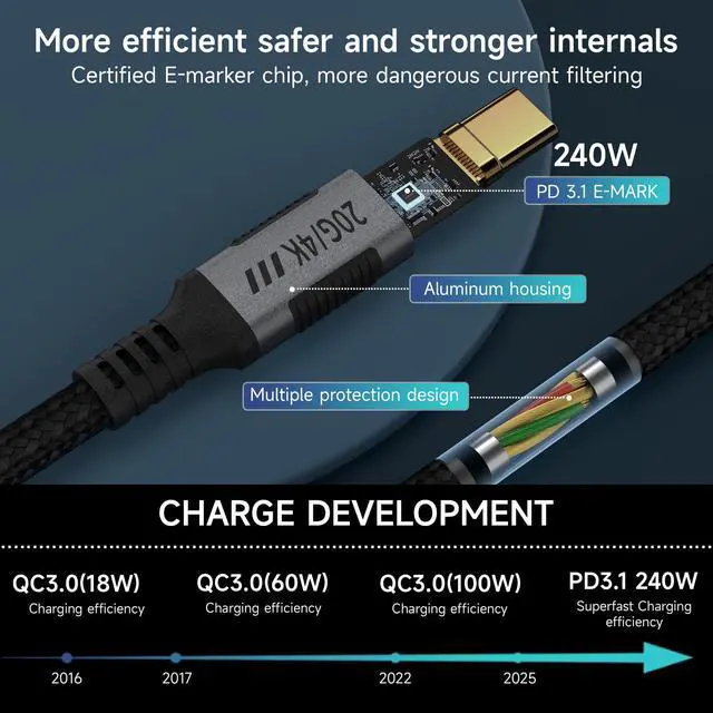 | Special Feature | 240W Fast Charging, 4K@120Hz, Braided, Data Transfer, USB C 3.2 Gen 2x2 |