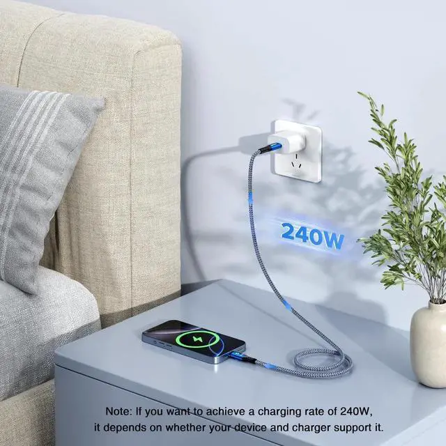 120Gbps Video Bandwidth: 240W USB C cable for Thunderbolt 5 cable drive dual 8K / 6K@60Hz, triple 4K@144Hz, or a single 8K@165Hz/4K@540Hz/16K@60Hz display. Perfect for multi-monitor workstations, VR gaming, and professional color grading.