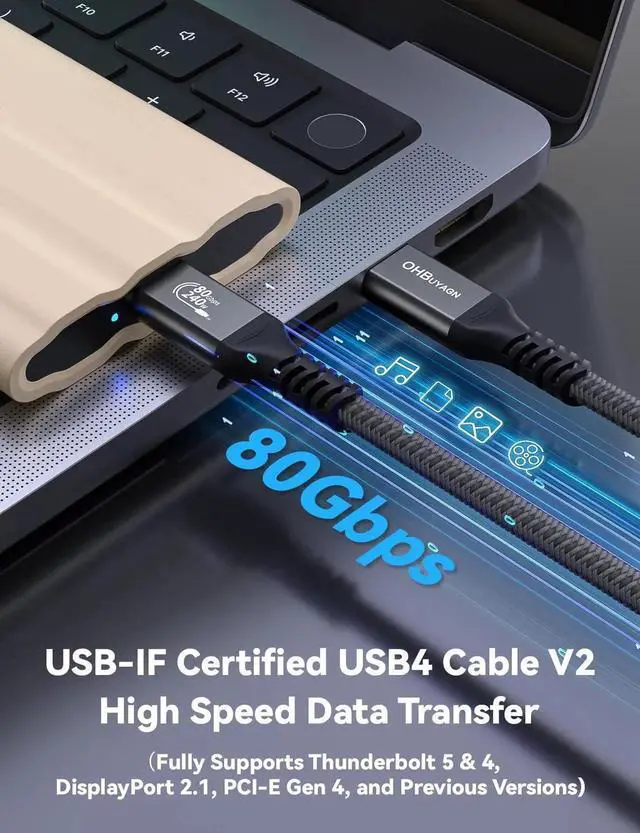 ![Alt view image 5 of 5 - [2 Pack 5FT]80Gbps USB 4 Cable for Long Thunderbolt 4 Cable, 120Gbps Bandwidth for 16K/Dual 8K, 240W Fast Charging USB C Monitor for Thunderbolt 4/3,iPhone 16/15,MacBook Pro/Air,iPad Pro,Dell XPS](https://c1.neweggimages.com/productimage/nb640/C2GMS25122403DT871D.jpg)