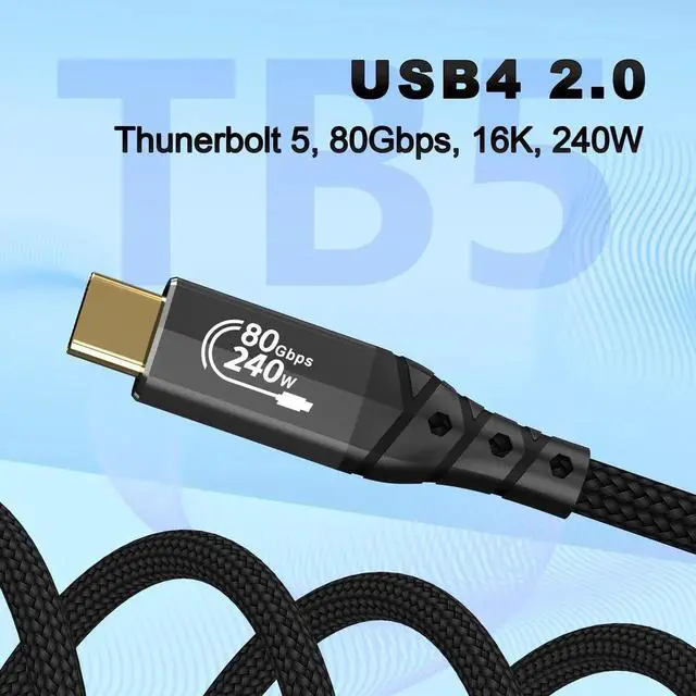 ZIKNYDO USB 4 for Thunderbolt 5 Cable, USB C 80Gbps Data Transfer, 120Gbps Bandwidth for 16K/Dual 8K Displays, PD 3.1 240W Charging- 1.6FT / 0.5 m, for Thunderbolt 4, SSD, MacBook M4 Pro/Max, Docking, eGPU