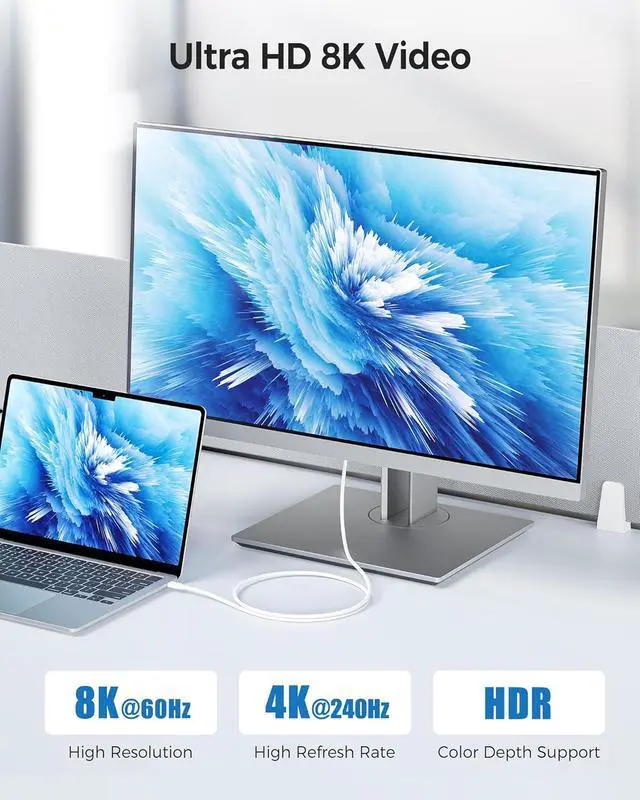 Certified Thunderbolt4 cable supports the latest Thunderbolt 4 features and performance; Enjoy blazing-fast 40Gbps data transfer on all Thunderbolt 4 devices; It features enough bandwidth to drive one 8K display or two 4K displays; Connect the latest high definition monitors and TVs for vibrant, crystal-clear 8K video and authentic high-quality audio; Power and charge devices with Power Delivery 3.0 100W charging support for doing it all with a single cable