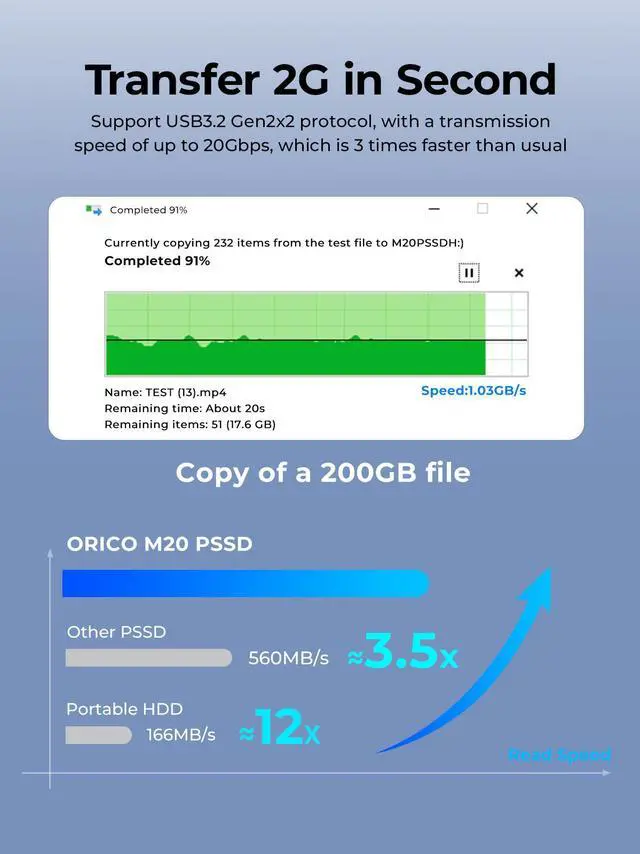 • 10Gbps, the maximum reading speed is 1000MB/s