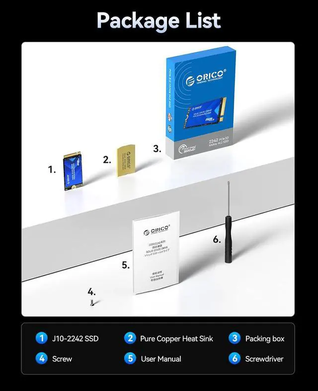 Brand ORICO Item model number J10-2242 - NVMe PCIe 3.0 Color Black Flash Memory Size 1 TB Hard Drive Interface Solid State Manufacturer SHENZHEN ORICO TECHNOLOGIES CO., LTD Country of Origin China