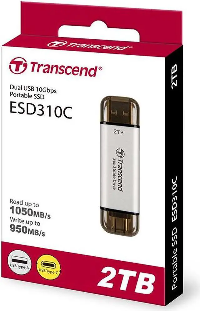 Transcend 2TB ESD310 Portable SSD USB Type-A & Type-C [SILVER]
