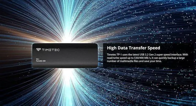 This high-speed External Solid State Drive uses the fast USB 3.2 Gen2, backward compatible with USB 3.0, USB 2.0. Please note that a USB 3.2 port is required in order to reach USB 3.2 performance.