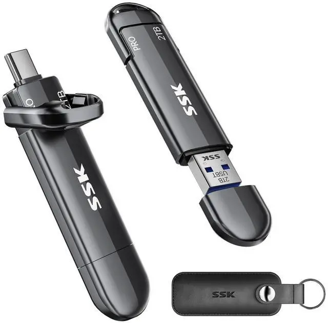 - Dual USB-C & USB-A SSD DriveSSK dual usb external solid state drive with USB A & Type-C dual interfaces. Dual ports are more convenient for data transfer between different devices, let you switch easily storage space. Quickly move expanding storage pictures or movies on iPhone 15/16/17 series, Android OTG devices, MacBooks, Windows PCs, car audio, and smart TVs