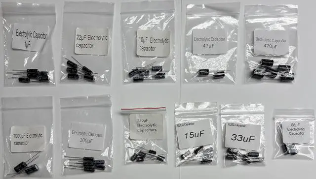 11 Value Electrolytic Capacitor Kit This Ceramic Capacitor Pack is Great for DIY Electronic Experiments and At-Home Repairs. 11 bags of