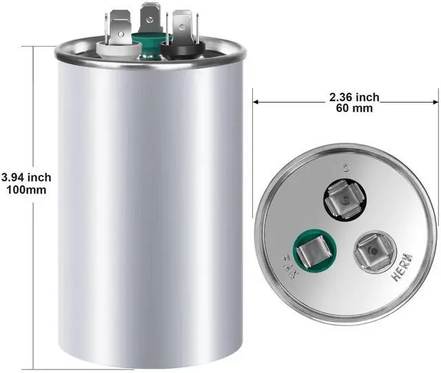 Ombines two capacitors into one unit. Three terminals on the top are labeled "Herm"/"H" for the compressor motor, "Fan"/"F" for the fan, and "C" for the common line.It will power a compressor motor and a fan motor