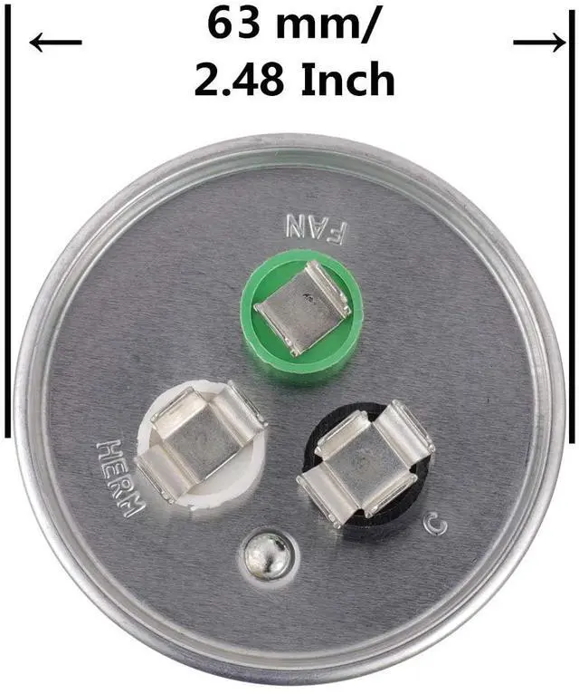 Ombines two capacitors into one unit. Three terminals on the top are labeled "Herm"/"H" for the compressor motor, "Fan"/"F" for the fan, and "C" for the common line.It will power a compressor motor and a fan motor
