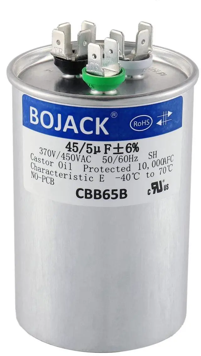 Ombines two capacitors into one unit. Three terminals on the top are labeled "Herm"/"H" for the compressor motor, "Fan"/"F" for the fan, and "C" for the common line.It will power a compressor motor and a fan motor
