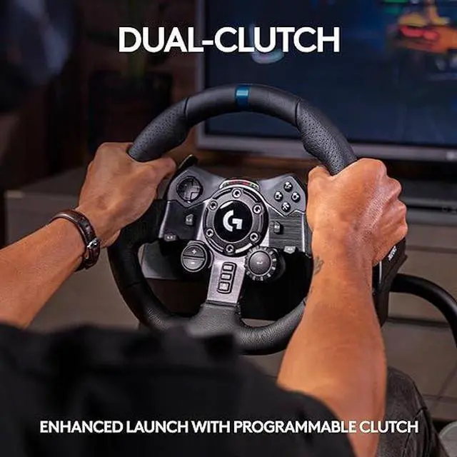 PRODUCT OVERVIEW Logitech G923 is a high-performance racing wheel that revolutionizes the e-racing experiencere-engineered to support a game-changing feedback system, G923 features TRUEFORCE, next-generation force feedback that dials into game physics to deliver higher fidelity realism. Feel the pistons pumping, the gravel crunching, and every shift, drift, and hairpin turn like never before. An all-new progressive brake pedal recreates a pressure-sensitive brake system, while a programmable dual-clutch system simulates a real race car launch assist in supported games. Get more traction with less smoke. A streamlined design features integrated controls for better performance, with a built-in 24-point selection dial, full console controls, and the classic RPM LED display for supported games.