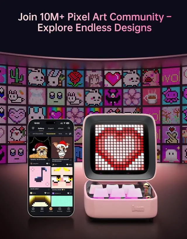 Pixel Art Display & DIY App Control:Retro pixel-art speaker with a vivid pixel screencreate your own designs in the Divoom app or pick from the in-app gallery to match your desk mood anytime.