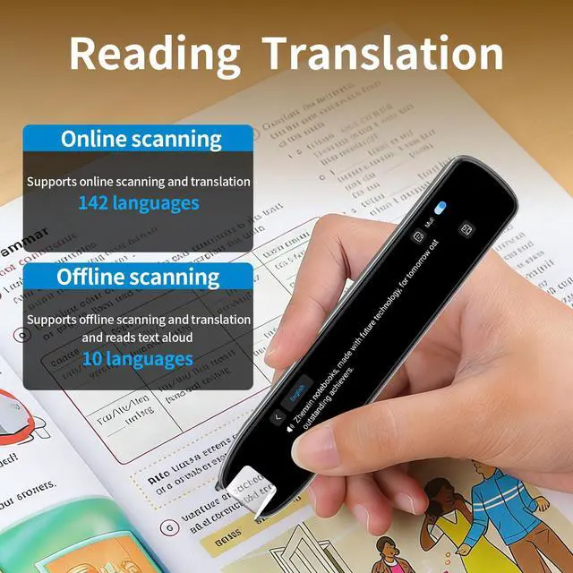 Multi-functional Reading Translation Pen: A versatile translator pen and reading pen for kids and adults. It supports online voice and scanning translation in 142 languages, as well as offline translation for 10 major languages (including Chinese, Japanese, Spanish, French, German, etc.), making it suitable for travel, learning, and multilingual environments.