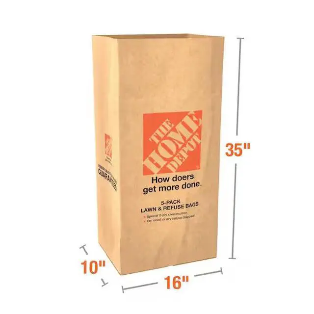 The Home Depot 30 Gal. Paper Lawn and Refuse Bags feature 2-ply wet-strength paper construction for durability and tear resistance. The bags are suitable for moist or dry refuse disposal. Suitable for use in composting in your garden.