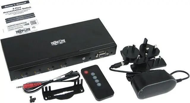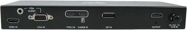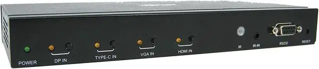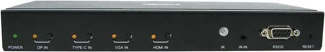 4-Port Multi-Format Presentation Switch Connects 4 Video Sources to One HDMI Display This presentation switch connects four separate source devices to your 4K television, projector or monitor’s HDMI input and switches between them. The B320-4X1-MH features HDMI, DisplayPort, USB-C and VGA + Audio inputs for connecting Windows laptops, cable boxes, media servers, Blu-ray players, video game consoles and other video sources. Switch from one source to another using the manual push buttons, RS-232 commands or the included remote control. Suitable for a Wide Range of Audio/Video Applications for Work or Play This switch is recommended anywhere a variety of video signals is transmitted to a hi-def display.