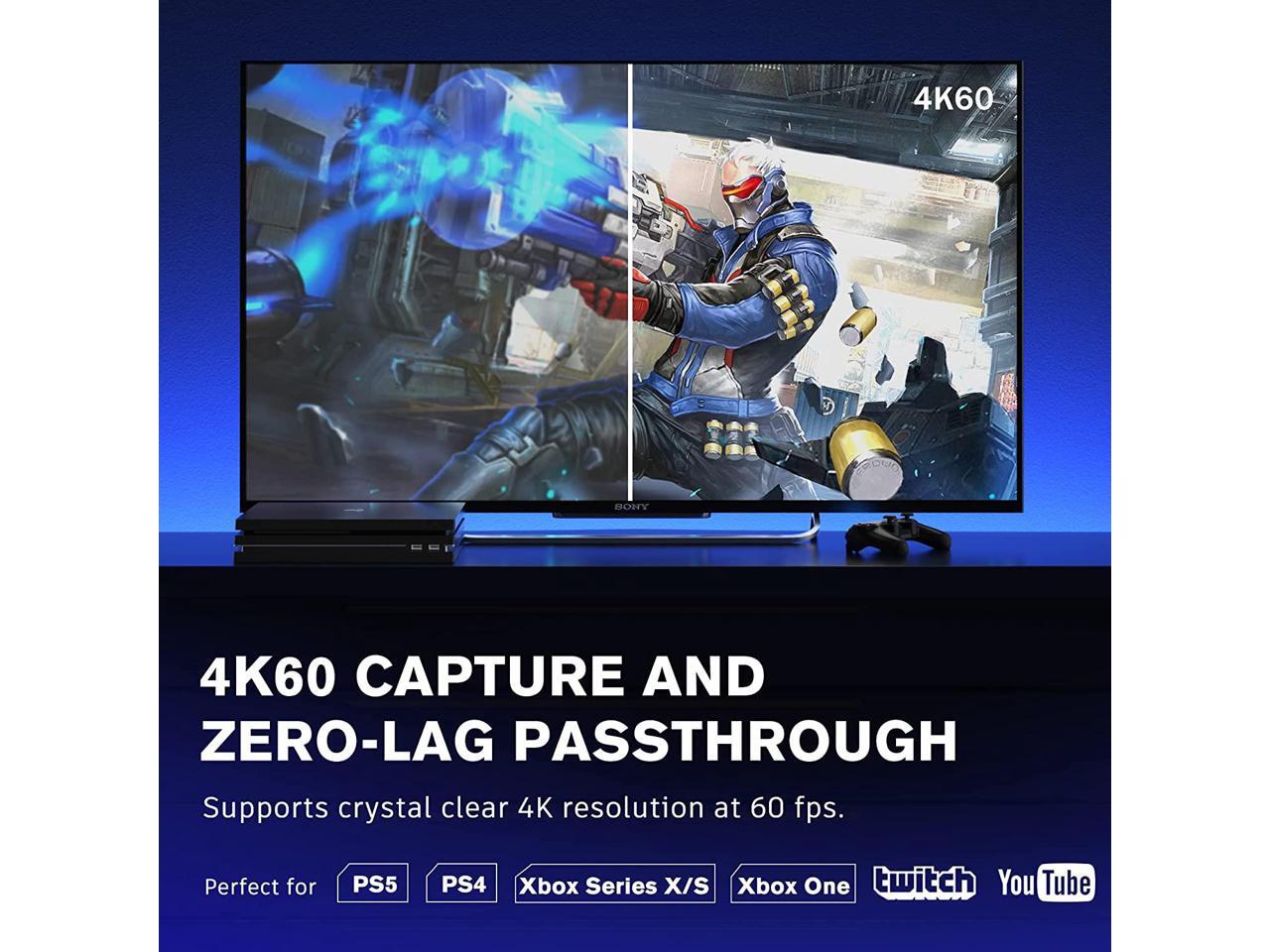 - 4K Capture Card & HDMI Pass-through: Supports input max resolution 4K 60Hz and captures in 4K30Hz or 1080P 120FPS resolution.