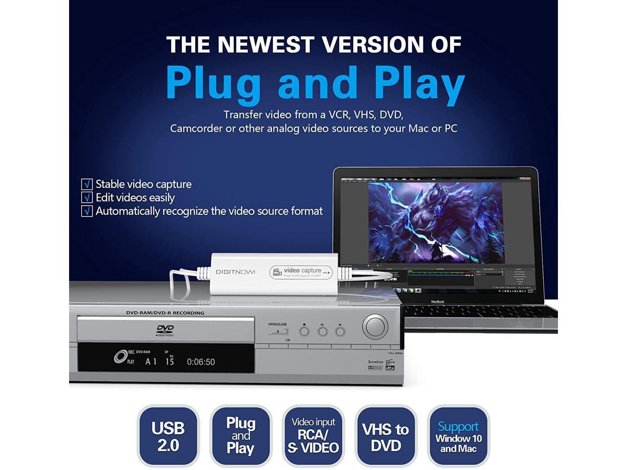 - This is the latest smart upgrade model, used to convert old VHS tapes into digital files in various formats, and automatically recognize the video source format and output format, or manually change it, easy to use, suitable for VCR, VHS , DVD, camcorder or other analog video source.